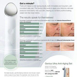 Genius Ultra is recommended for use twice a day: morning and night. Simply apply your Arbonne skincare product onto a clean face with the Genius Ultra & be sure to apply a SPF sunscreen after using the Genius Ultra as a final step if used in the morning.