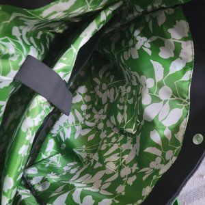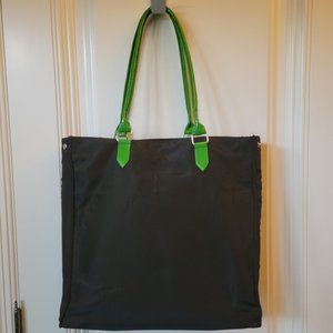 Arbonne, EUC, Black and green nylon tote, with 4 protective feet, printed interior lining that also has a padded laptop insert, but not an actual sleeve, regardless will provide protection. Top snap closure. Mesh pocket and slip pocket inside. No visible marks, stains or tears. Exterior shows some minor bubbling against the padding.