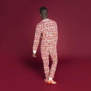 Mountie Onesie features an all over print of RCMP strutting down the street. A playful piece for keeping cozy this season, this onesie adds a pop of patriotism to your look, whether you're lounging around the house, cottaging with friends, or bundling up for bed.