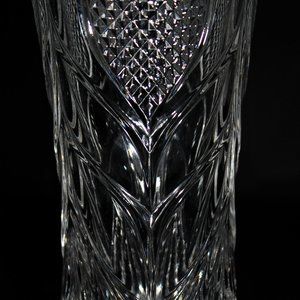 An eye-catching vase made by Arc France. The top of the vase alternates between a grouping of 3D diamonds and a single groove that branches out into several more as it flows down the vase. The diameter of the vase is 10.5cm or 4.1" and the height is 21.8cm or 8.6".