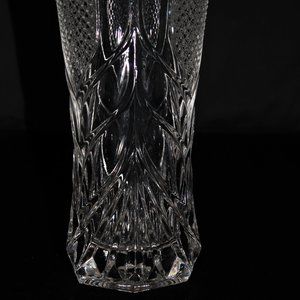 An eye-catching vase made by Arc France. The top of the vase alternates between a grouping of 3D diamonds and a single groove that branches out into several more as it flows down the vase. The diameter of the vase is 10.5cm or 4.1" and the height is 21.8cm or 8.6".
