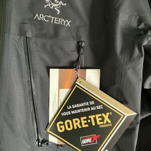 Rare with tags Theta AR Goretex Pro shell jacket . Never worn in perfect condition. Men’s Large. Durable, breathable,Windproof, waterproof. one interior chest pocket, two large chest height pockets, Velcro adjustable cuffs, pit zip vents, helmet compatible DropHood with two draw cords for adjustment, mid back and hem drawcord , drop back hem.Made in Canada.