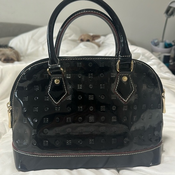 Arcadia Black Patent Leather Satchel Bag Handbag Black Made in Italy