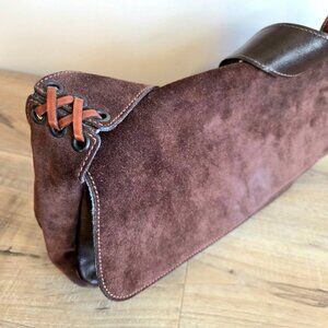 14'' x 7''. Has some scratches on leather. Overall is good condition.