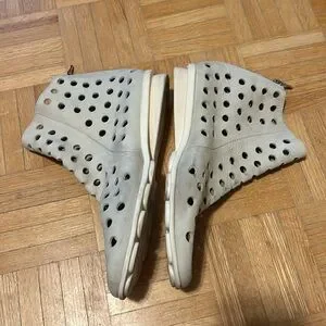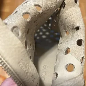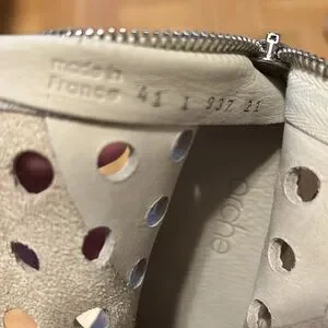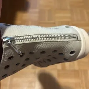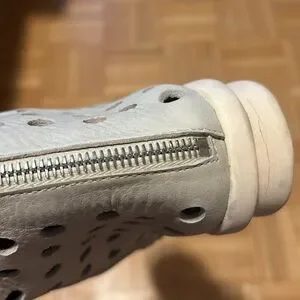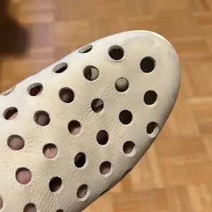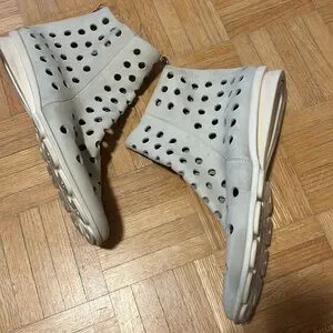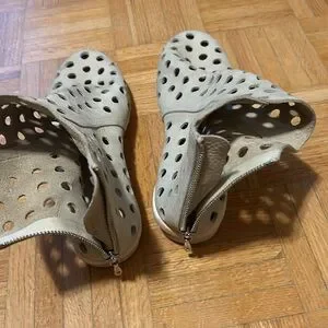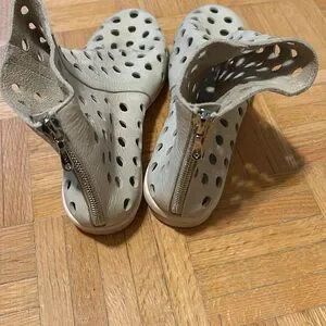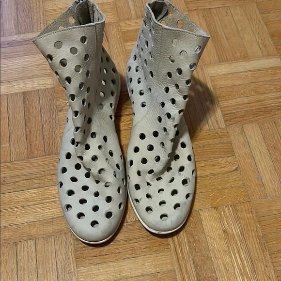 Stylish perforated leather ankle boots in a chic cream color. Perfect for adding a unique touch to any outfit. Please zoom in all photos. You will receive exactly what is on the photos. I am size 9, 9.5 and the are big for me