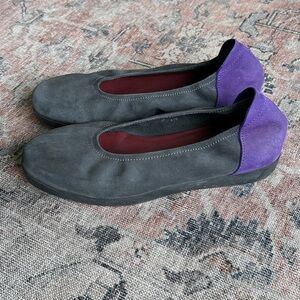 Arche Achette Nubuck Leather Gray and Purple Cushioned Ballet Flats