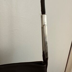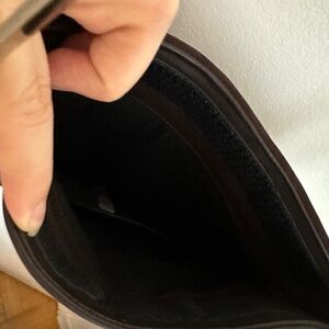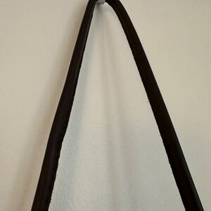 Brown Nubuck leather, front and back different textures, can wear two different ways. In great condition, made in France, velcro opening. A classic staple to the closet.
