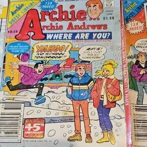 Six Archie Comics digest magazines shown. Bright illustrated covers featuring Archie, Betty, Veronica and friends. Vibrant multi-color artwork. Great for comic collectors and fans.