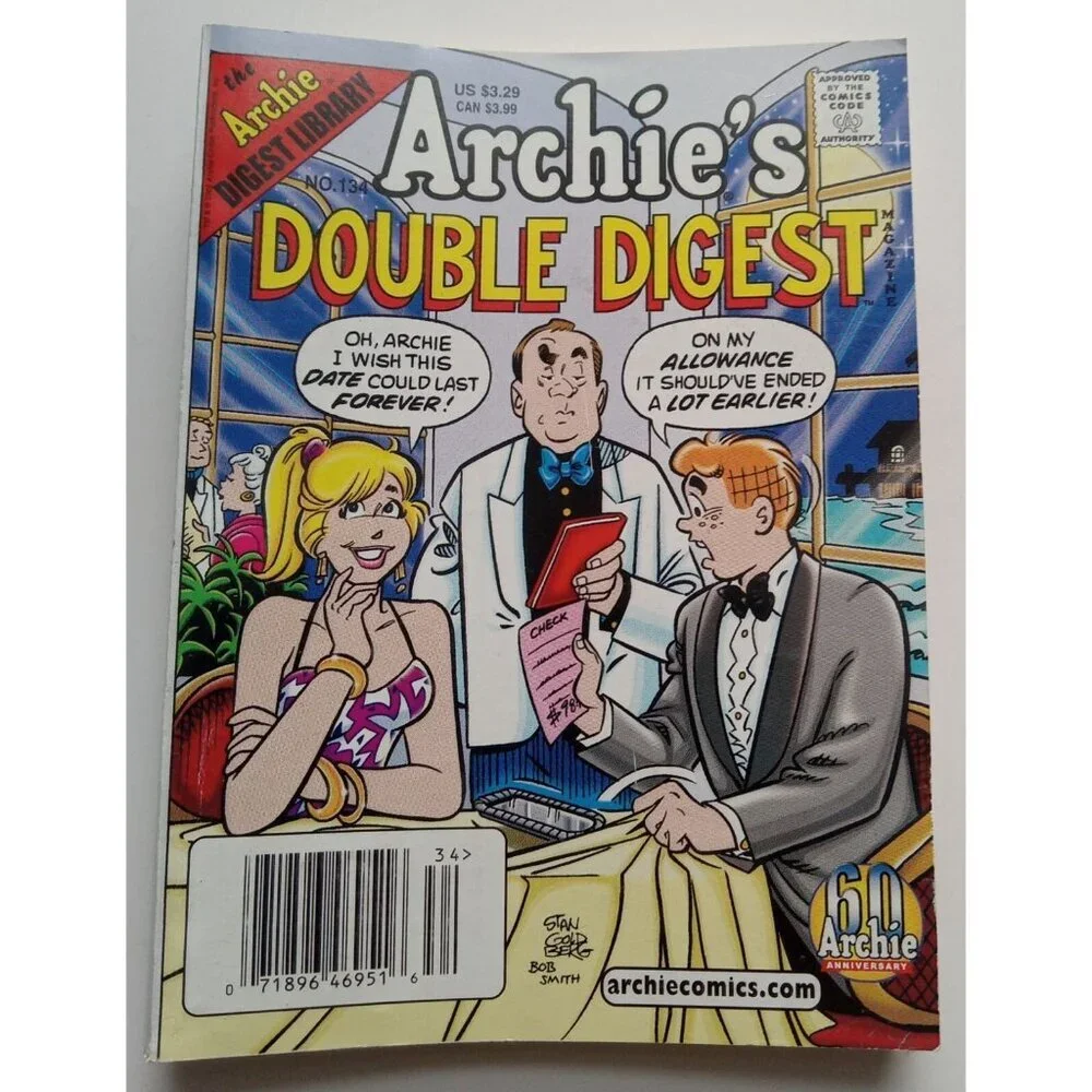 Dive into the world of Archie with issue #134 of the Archies Double Digest, a staple for fans of US Comics tradition. This edition presents the timeless adventures of Archie and his friends in a convenient digest format, perfect for a quick read or for collectors looking to complete their series.With its appealing blend of humor and coming-of-age storytelling, Archies Double Digest #134 offers a nostalgic trip through the teen antics that have charmed readers for generations. Whether you're a long-time follower or new to the series, this issue promises to be a delightful addition to any comic book collection.