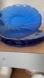 Arcoroc France cobalt blue scalloped edge swirl textured glass plates, 7 MCM