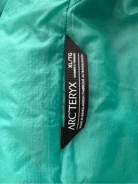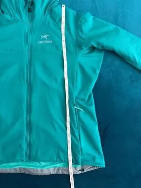 Lightweight, breathable, insulated hoody; Ideal as a standalone piece in fair weather, or as a layering piece in cold conditions. Atom Series: Synthetic insulated mid layers | LT: Lightweight. The hole pictured is located on the front lower part of the jacket and the snag is on the sleeve. A bit of discoloring on sleeves. Tons of wear left!