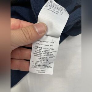 This is an Arc'teryx Dallen Fleece Full Zip Jacket in blue, size 2XL for men. Made from a polyester blend fleece fabric, it features a hood and full zipper closure. The jacket is suitable for outdoor activities like skiing, climbing, and hiking, making it a versatile and functional choice for travel or casual wear in winter, fall, and spring seasons.
