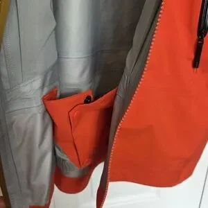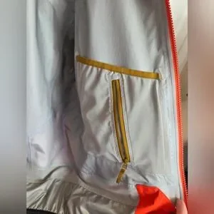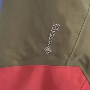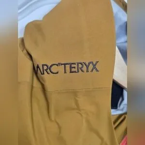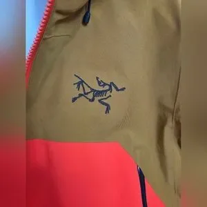 Arc'teryx jacket with a bold orange and olive design.