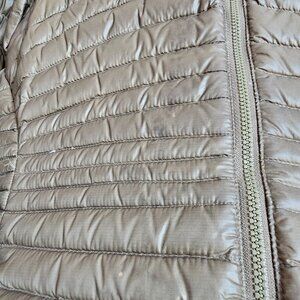With its distinct style and advanced materials, the hooded nuri is warm, sophisticated and smart. lofty 750 fill european grey goose down provides insulation, and strategic quilting creates a refined, tailored look and helps maximize the down’s performance. the lightweight teprine™ shell is water repellent and has a sleek, subtle sheen. the streamlined regular fit and articulated patterning help you move comfortably across the urban landscape, and the down filled hood adds warmth and protection.