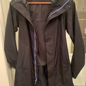 This coat is perfect for Fall and Spring! It is windproof, water resistant and breathable, and made of a gore-tex fabric that is soft to the touch and has brushed polyester lining for added comfort. The thigh length and lined hood provide warmth and protection.