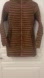 Stay warm and stylish with this brown quilted jacket. Perfect for chilly days. Long fitted silhouette, double zipper, zipper pockets, full size hood. Well loved with signs of wear on material, very small discolourations and catches on fabric pictured. Price will reflect. Still life left in it just a little small for me now in the arms.