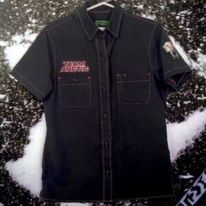 Arctic Wear by Artic Cat Short Sleeve Button Up Black Size Small