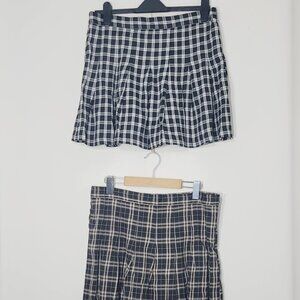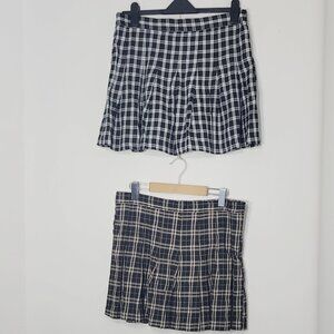 Ardene 2Pc Set Black White & Beige Two Pleated Plaid Mini Skirts Size XL