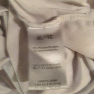 This is such a comfy shirt, the fabric is so stretchy. Burgundy sleeves with an ACDC logo, the white is a little see-through so be warned.