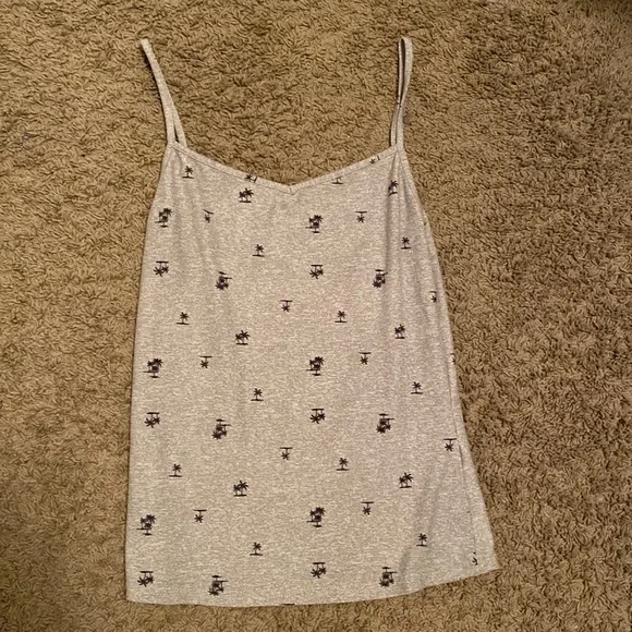 Grey reversible Ardene tank top with small black palm trees. Size Medium