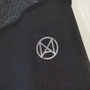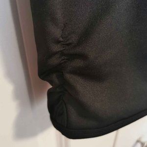 Move by Ardene black mid-rise capri-length cropped leggings with charcoal waistband. Feminine ruching details at cuffs and back of waistband. Logo applique on front is slightly peeled, but otherwise like new. Worn once or twice.
