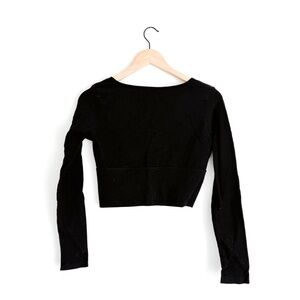 Ardene Black Fitted Long Sleeve Crop with Deep V Neckline - Size Large, fits Med