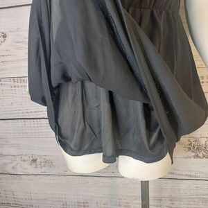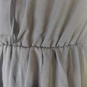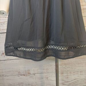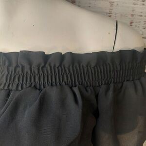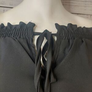 Chic off-shoulder design. Elastic waist for comfort. Lace trim detail at hem. Tie up front.