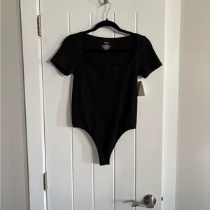 🆕 Ardene Black Seamless Scoop Neck Fitted Bodysuit Cap Sleeve
