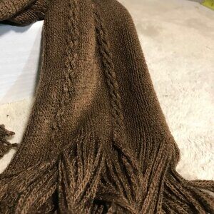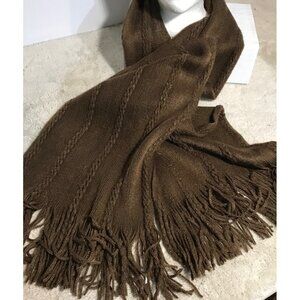 Ardene Brown Cable Knit Acrylic Scarf With Fringe 8" Wide 68" Long
