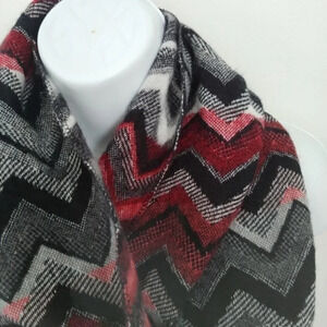 Nice everyday circle scarf. Zigzag print with lots of variety. Deep red, black, white, grey.