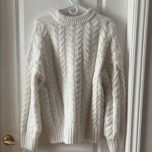 Elegant cable knit design. Soft and warm. Ideal for layering.