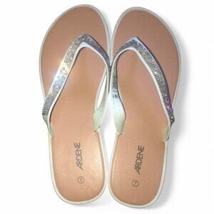 •sparkly rhinestone ARDENE white rubber wedge heeled platform flip-flop sandals 🤍