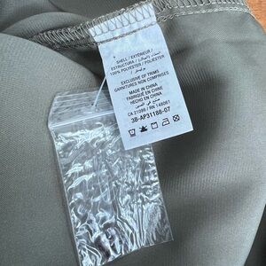Ardene button-up blouse top. Green colour. Buttons on the arm cuffs. Back pleat for optimal fit and style. Extra button included. Tags still attached. Has a silky feel to it, but is a polyester material.