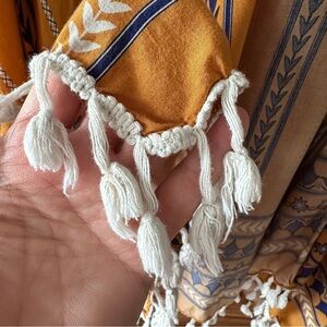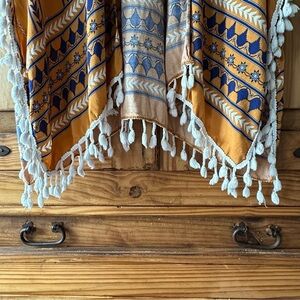 Ardene Kimono Fringe Tassels Mustard Yellow Navy Blue White - One Size
