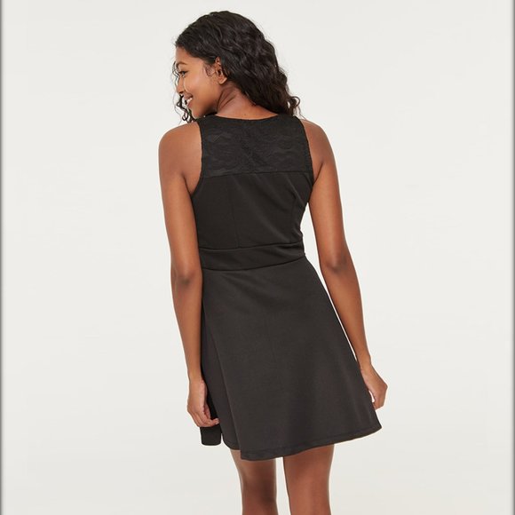 Cute a-line black dress from Ardene. Lace detail. Stretchy fabric. New with tags. Size L. All reasonable offers welcome! :)