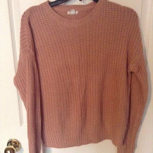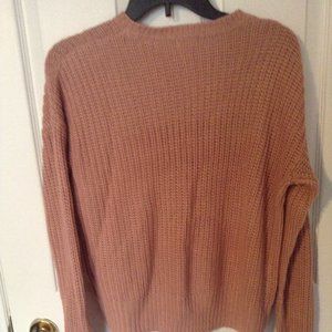 Very good condition, only worn a couple of times. This is a pink, fairly thick, knitted, plain, scoop neck sweater.