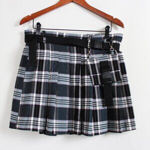 A mini skirt in black, white and grey with subtle lilac stripes. The material is lightweight with some stretch, unlined. Perfect for summer, spring and great for layering in the fall. New with tag. Great condition.