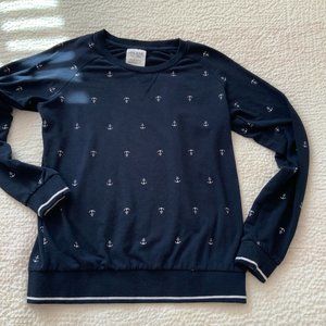 Ardene Pullover Crew Neck, Size M, Navy Blue with White Anchors