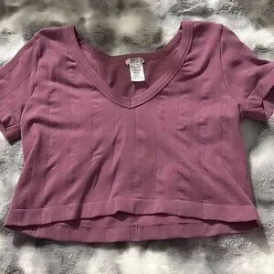 Stretch ribbed knit crop top with a V-neck.