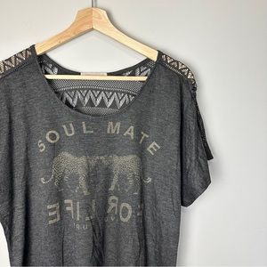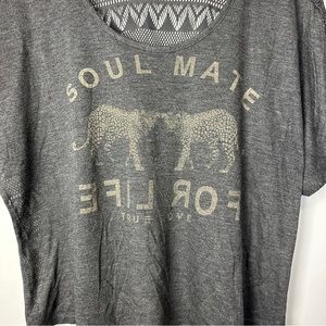 Ardene Soulmate For Life Two Leopards Back Mesh Design Gray Women's T-shirt