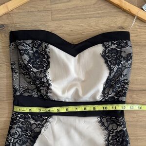 Tags: bodycon dress, strapless, lace dress, cream, black lace, cocktail dress, party dress, special occasion, elegant, chic, timeless, medium