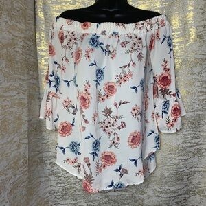 Ardene White Floral Print Bell Sleeve Off The Shoulder Blouse Size M
