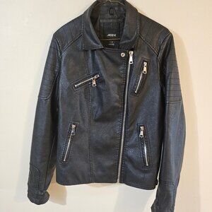 Ardene Women's Black Faux Leather Motorcycle Jacket - Size L
