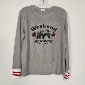 Ardene Women's Pajama Top Size L Waffle Knit Gray Black Bear Weekend Getaway