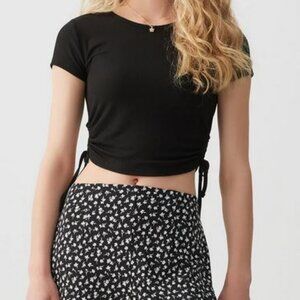 Ardene Women's Side Ruching Ultra Crop T-Shirt - Black