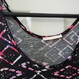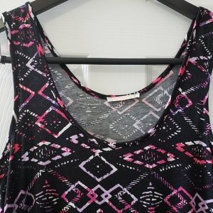 Black and pink geometric maxi dress. Size runs smaller than usual. Stretchy comfortable fabric.