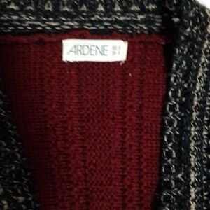 beautiful and comfy Ardène sweater. in red, black and beige.