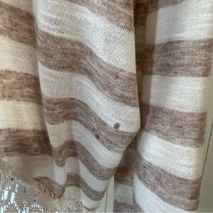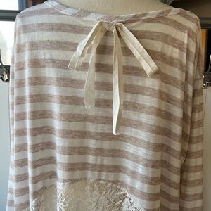 Cute soft oversized high-low striped cream and beige tunic with lower back lace. Long Sleeved, sweet little tie detail on back neckline. Wear this comfortable top with leggings, use a cover up on the beach, or just with shorts & sandals at a festival. Excellent Pre-loved condition💕