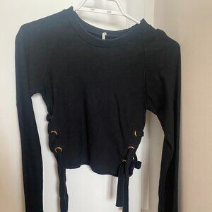Areyouami Kai Black Cropped Side Tie Sweatshirt