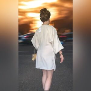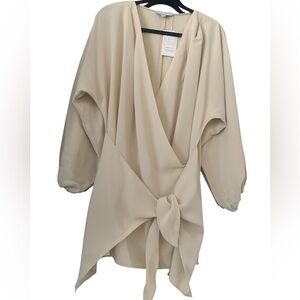 Tags: Mini dress, wrap dress, plunge neckline, sexy dress, party outfit, dinner look, going out dress, elegant mini, adjustable wrap, stylish dress, UK 6, US 2, fits small, fits medium, off-shoulder sleeves, chic outfit, feminine style, night out look, classy and sexy, flattering fit, trendy mini dress.